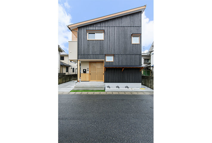 北区下中野という利便性抜群の地に、焼き板の際立つ片流れ屋根のお宅が完成しました。当初よりそれぞれハッキリとしたコンセプトをお持ちだったご夫婦。ご主人ご希望の「居酒屋風」はダイニングキッチンのテーマに、奥様ご希望の「バリのリゾート風」はリビングのテーマに、打合せを重ねて参りました。