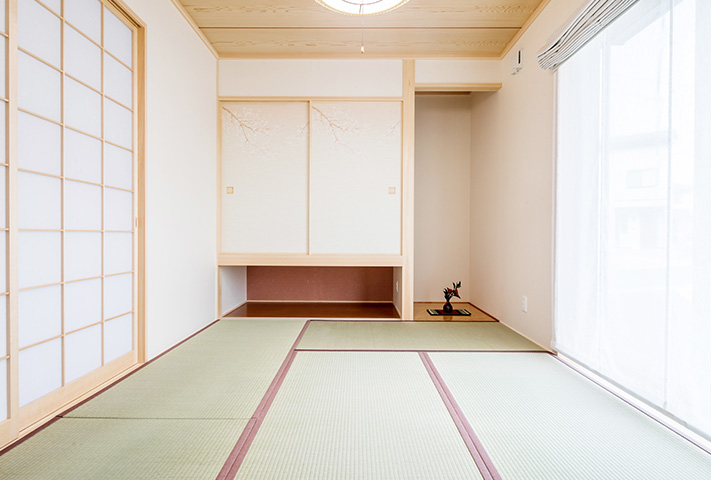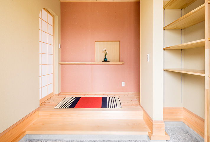 新興住宅地の中に、漆黒の本焼き杉と倉敷格子が特徴的なお宅が完成しました。和テイスト好みの中でもご自分たちのこだわりを随所に入れてます。外観は、和モダン、内観は和テイストの中にも北欧のテイストもキラリ。土間収納、和紙を壁紙に使ってみたり、檜の床材、モザイクタイルで遊んだ洗面、悟りの窓を室内に設けてみたり。楽しい試みてんこ盛りです。