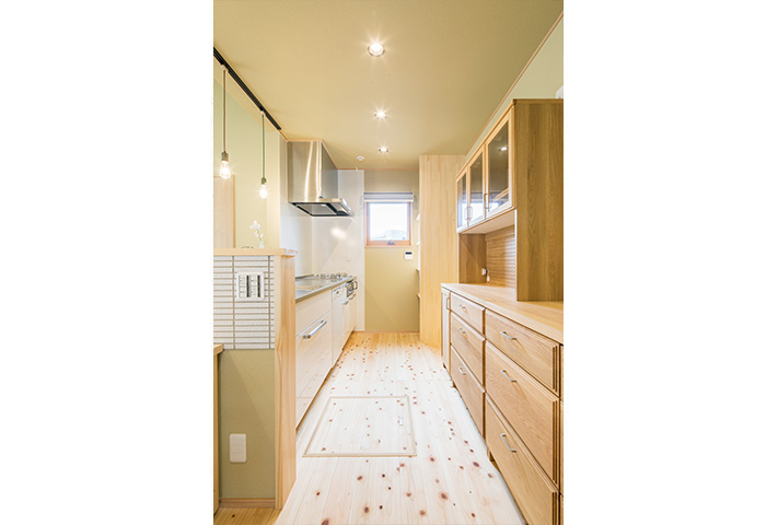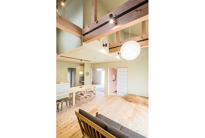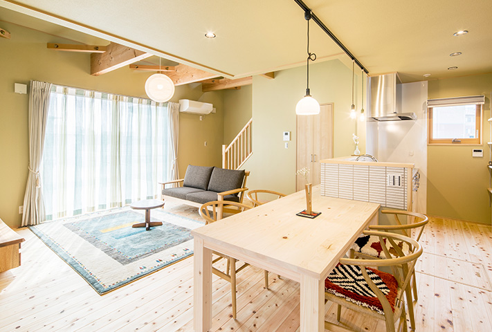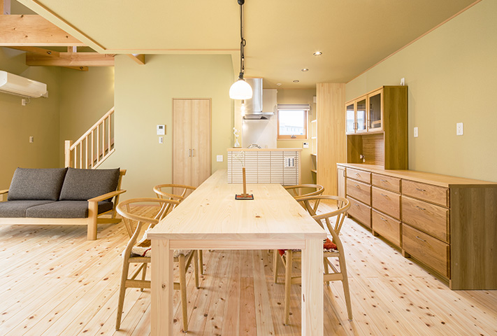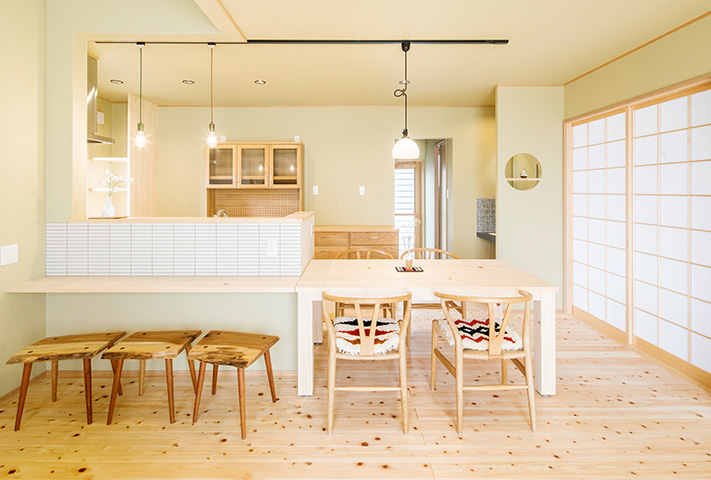 将来的には生活が全て一階で完結する間取りになっており、平屋ベースの二階建てを体現しています。