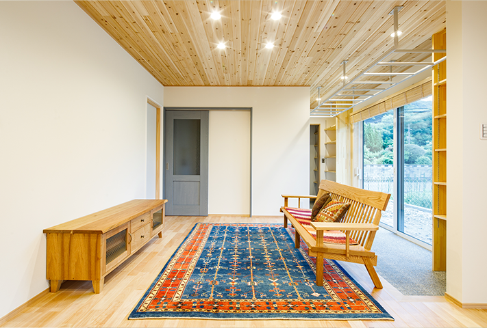 大屋根の映える本焼杉の平屋ベースの暮らし〜アスレチックなワクワク