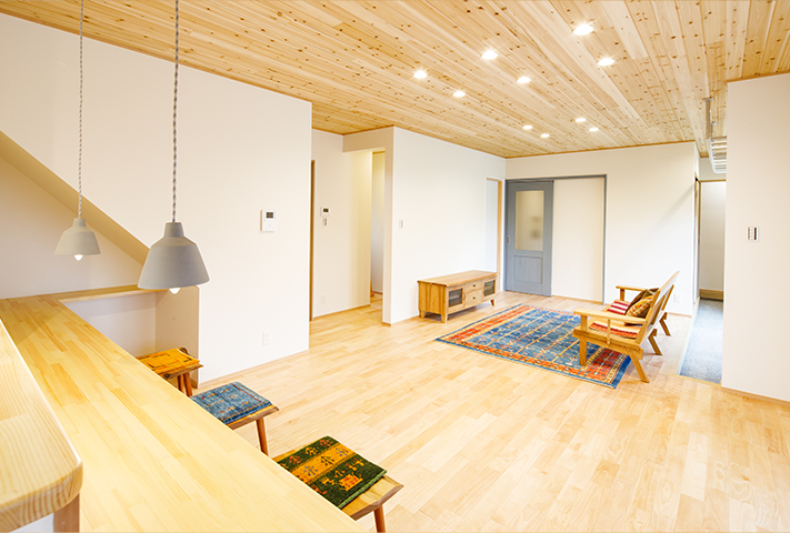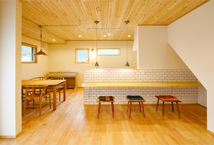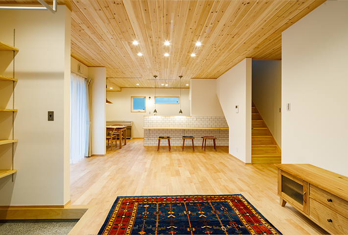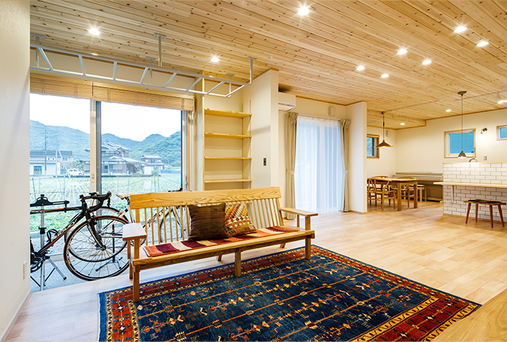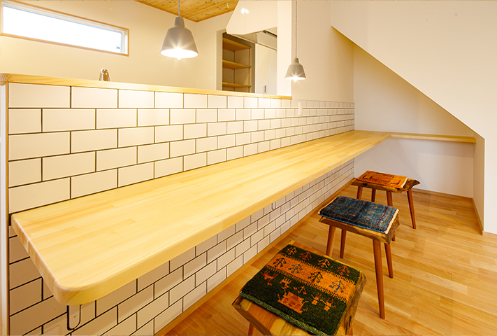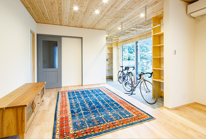ロードバイクと雲梯(うんてい)!一番最に聞いたご要望がこの2点でした。家の中でトランポリン、そして鉄棒ができるリビング。そしてかわいらしいおうち。本当に楽しく打ち合わせをさせて頂きました。外観はダイナミックな大屋根に黒と白のコントラストが特徴的です。中は通り土間、土間リビング、勉強カウンター、大容量のパントリー、家事コーナー、大きい洗面台、ライブラリーコーナー、屋根ウラ部屋、自分たちで塗ったしっくい。こだわりを感じるタイルと照明。お気に入りの暮らしが楽しみです!!