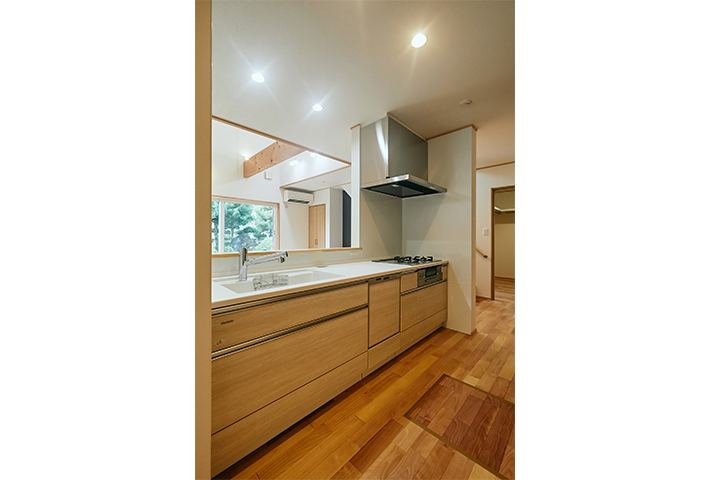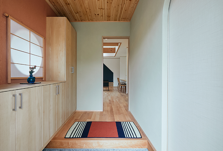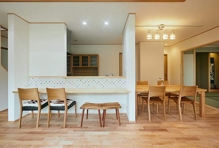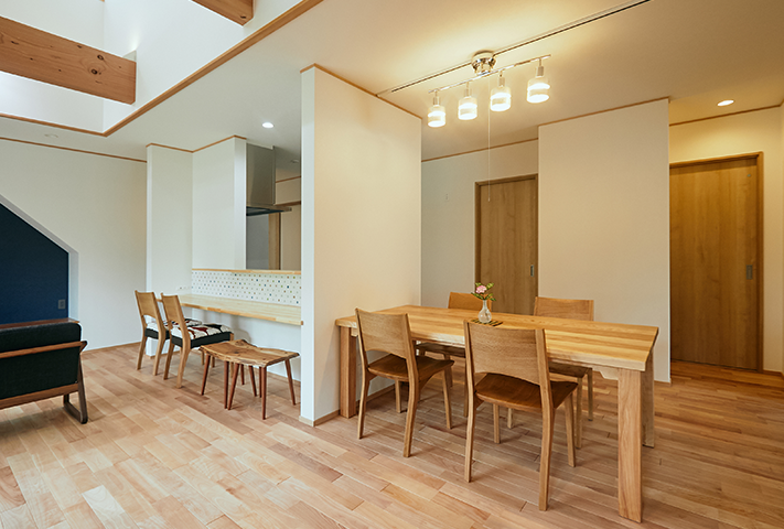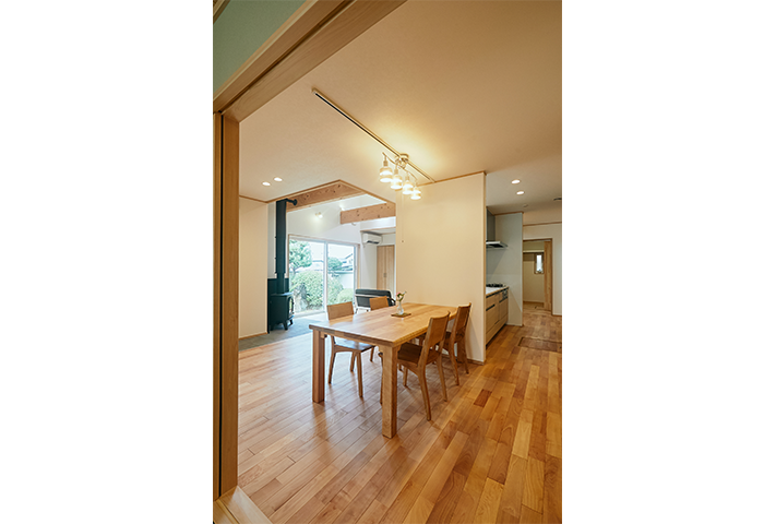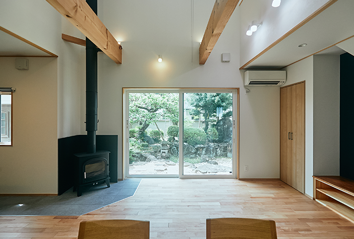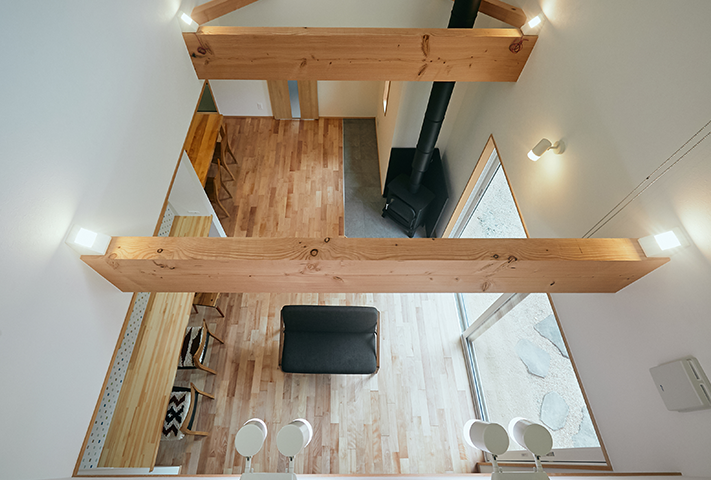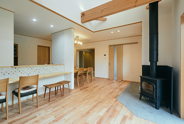 ストーブを囲む火のある暮らしが、日々の忙しさを忘れさせてくれ、衣・食・住に暮らしの丁寧さを考えさせてくれます。考え抜かれた家事動線に土間収納。将来1階ですべて暮らせるだけの段取りを準備しているお宅に仕上げています。