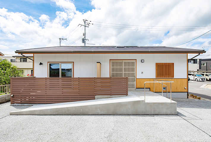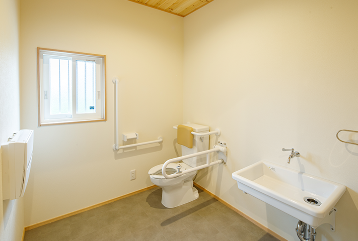 東京からの移住の相談を受けて、土地探しからのお手伝い。ご夫婦ともに車いす利用されるということで、バリアフリーはもちろんのこと、ご自分たちの不便さを解消すべくご要望をお聞きしつつ楽しい暮らしを実現できるお手伝いをさせていただきました。机上の理論と、実際の住まい手の感覚にも乖離があることも勉強させていただきました。特に脊髄損傷の方のお風呂の概念もたくさん学ばせていただきました。