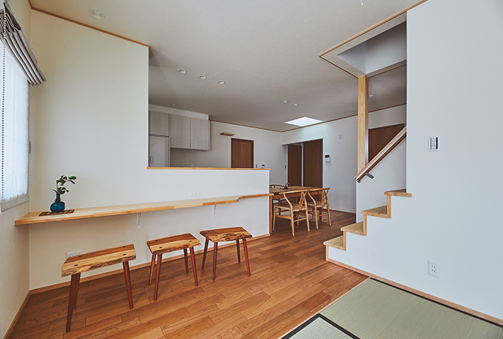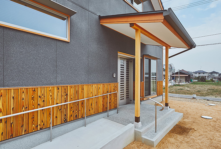 東京からの移住の相談を受けて、土地探しからのお手伝い。ご夫婦ともに車いす利用されるということで、バリアフリーはもちろんのこと、ご自分たちの不便さを解消すべくご要望をお聞きしつつ楽しい暮らしを実現できるお手伝いをさせていただきました。机上の理論と、実際の住まい手の感覚にも乖離があることも勉強させていただきました。特に脊髄損傷の方のお風呂の概念もたくさん学ばせていただきました。