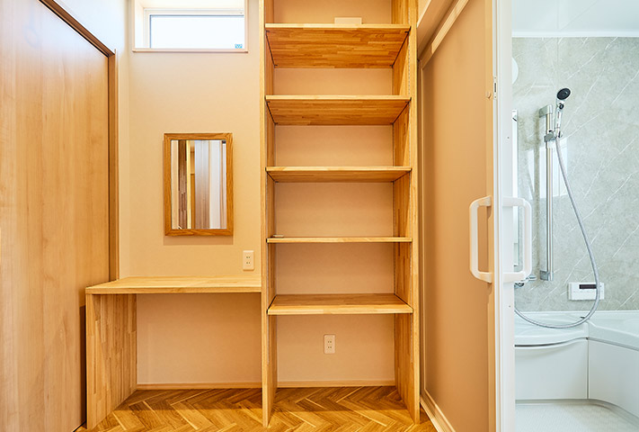 また、ご主人こだわりのバスボートを敷地内に出し入れできるように計画し、さらに籠って趣味を満喫できる部屋も建てたこだわりの住まいです。