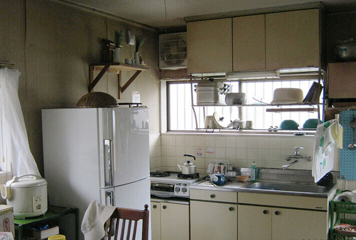 リフォームのきっかけは、お母様が骨折したことでした。買い物はもちろん、家事も思うようにならないお母様を放っておけないということで、ご夫婦は同居を決意した。ところが、築31年の実家は老朽化しており、ところどころ床も沈むような状態。間取りも不便なので、全面的にリフォームしました。