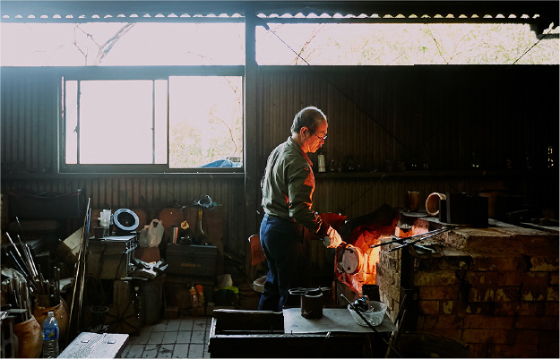 僕が子どもの時に、親父は吹きガラスのことが何も分からずにこの世界に引き入れられて、焼き物にしても、親父ぐらいの年代の人が一番バリバリ活躍してた。民藝もものすごく力があって、親父もそういう中に入っていったから、自然とみんなの波に乗って「民藝ってすごいな。」と思ったんでしょう。