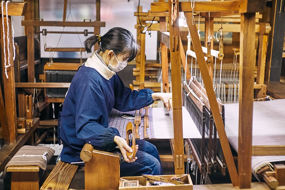 家や仕事場を借りる人もいるし、働きながら夜、小さい機で織っている人もいますね。機を織る場所がなくなっているし、音が大きいからマンションではできないんです。
