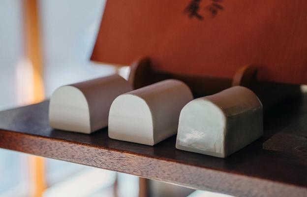 ほかには、今は「トンネル」と呼んでいる、かまぼこみたいな形の張り子を作っています。ほかの作り手にもこの形を作ってもらったら面白いんじゃないかということで制作してもらった磁器のかまぼこもあります。