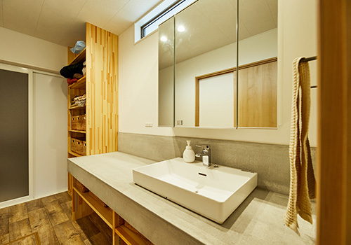 汚れものが出たら、キッチンのすぐ裏のランドリールームへ持っていけばいい。ランドリールームは三畳の広さがあり、そこで洗って干せるので実に楽だと妻も喜んでいます。見学会でも来場者から好評だったそうですね。
