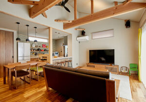 まず私が一番にうれしく感じたのは、玄関の土間ですね。長年アパート暮らしだったために、広い玄関は憧れでした。そしてその玄関から、天井の高いLDKへと仕切りなくつながる解放感。実に広々と感じられて、これにはお客さんも皆さん驚かれます。